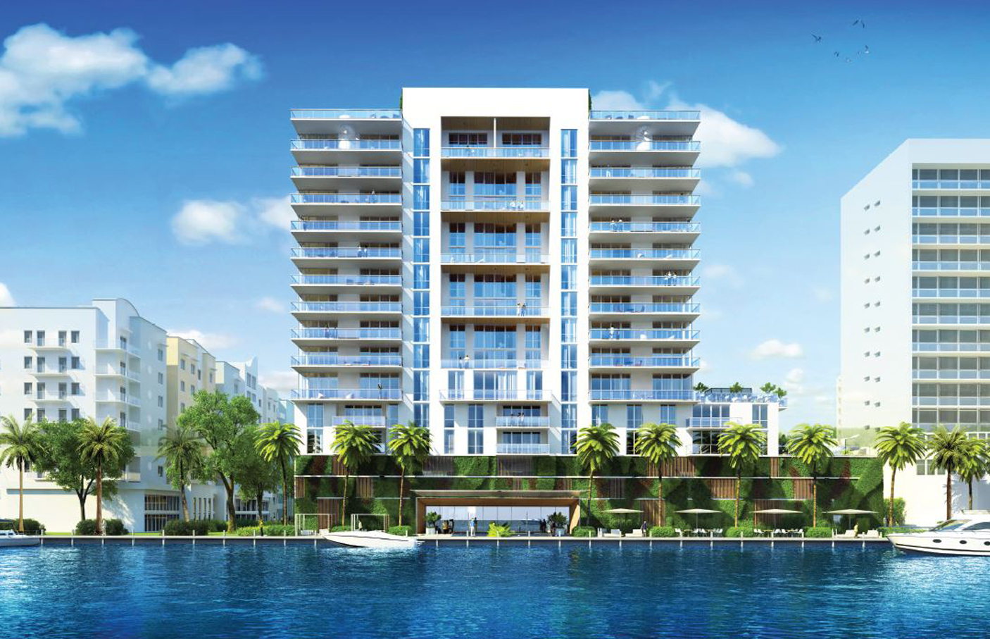Located in North Bay Village, this project included the design of 112,000 sqf of residential units plus amenity areas and a parking garage located at the base of the tower. All residential units are water-facing or enjoy views of the open water. The design was created for a development company to gain approval from the City’s Urban Development Review Board.Its metal cladding, concrete, and wood materials reflect the contemporary vibe of the Miami lifestyle.