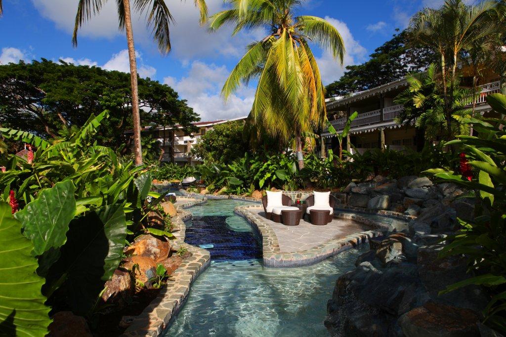 The project involved the renovation of hotel rooms, common areas and amenities including the restaurants, bars, swimming pools and recreation areas. This luxury resort is in the island of Saint Lucia in the Caribbean, surrounded by miles of white sand beaches and tropical gardens. While light colors were used for the exterior to enhance the beauty of the surrounding tropical environment, glass was used in several areas to enhance the natural light and views.