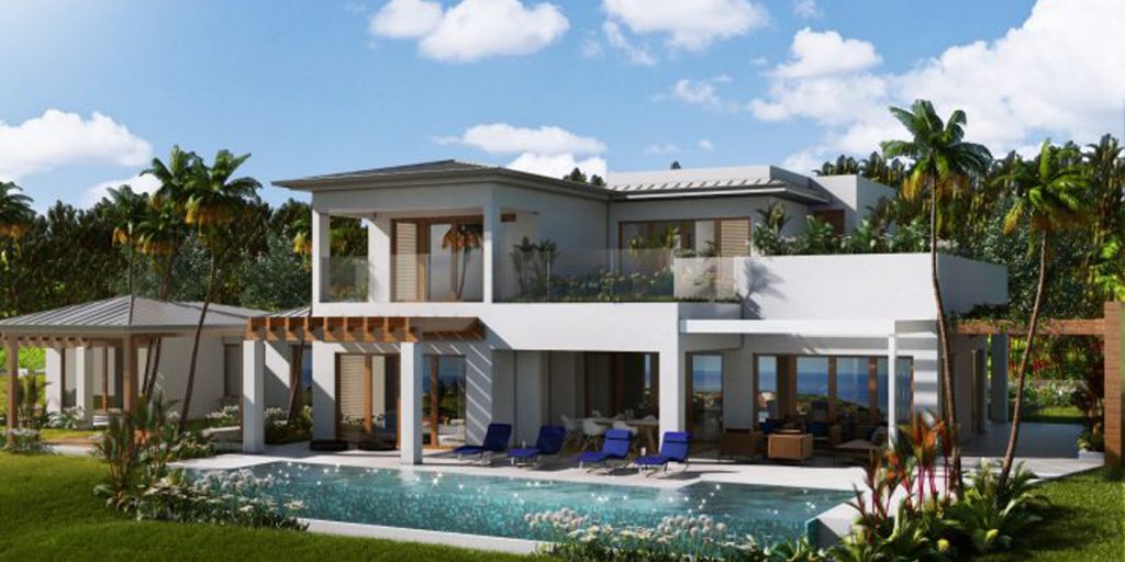 Located in the south of the island of Grenada and sitting on a triangular and steep piece of land, this contemporary luxury Caribbean Residence was designed to enjoy the unique views of Westerhall bay. The design suggests a single-story on the entrance side yet opens up to two stories on the bay side. The entrance of the house gives onto a an entrance gazebo connecting to the two main parts of the house, the guest and main house. The views of the bay were optimized by balconies, terraces, pool decks, an outdoor dining gazebo and a forty foot infinity swimming pool.